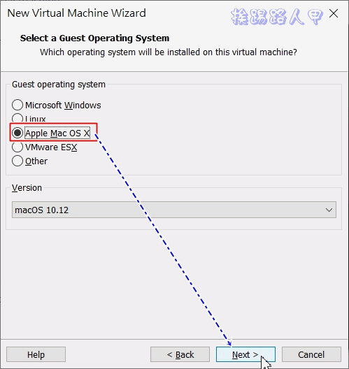 大費周章後終於看到「Apple Mac OS X」,表示辨識到了OS的系統,假如沒有看到就表示之前執行unlocker的「win-install.cmd」失敗喔!選擇「Apple Mac OS X」後記得要選擇macos 10.16版本(下圖是筆者要測試用某個特殊軟體,所以選擇10.14)。