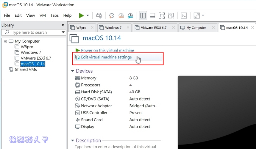 VMware Workstation是一款超優質的虛擬機器軟體,實現一台硬體設備同時執行多個作業系統的工具軟體,方便玩家進行研發、測試與佈署應用程式的模擬環境,是IT人員不可或缺的工具,挨踢路人甲都使用VMware來玩Widnows與Linux虛擬機器,不過最近一年中,常常在公眾場合看到Mac筆電,流行的趨勢不再是玩家的囊中精品玩具,買不起沒關係,但身為MIS人員怎麼可以說沒玩過Mac OS呢?就讓挨踢路人甲來告訴你窮人如何品嘗 MacOS Mojave 10.1x 的方法。