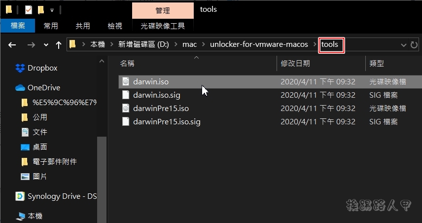 除此之外,也會下載適合MacOS的VMware Tools工具,其下載的路徑在Tools資料夾內。