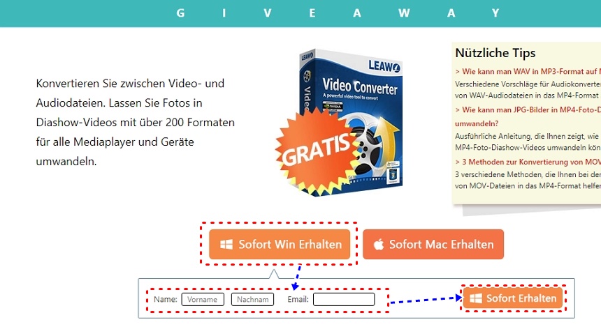 輸入名稱和郵箱後,點擊〔Sofort Erhalten〕。