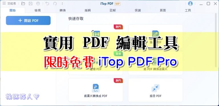 網路上提供下載的手冊、文件,用PDF格式無所不在,Adobe的Acrobat編輯版本價格不斐,所以特別介紹一套 iTop PDF Pro,擁有多樣化的PDF編輯功能,輕鬆完成不同格式檔案互轉,也含有合併、分割、加密、浮水印與解密等功能,完善你的辦公解決方案。