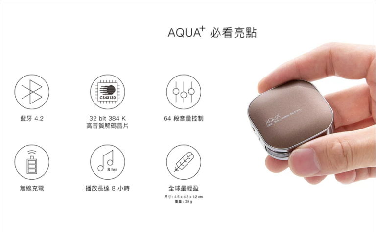耳罩式到入耳式、有線到無線,耳機產品五花八門,NEXUM AQUA+ 是一款 HiFi Audio 無線藍牙耳擴,也就將音響的擴大機變成隨身帶著跑的行動擴大機,不論是手機、平板或筆電等,透過藍牙連結並由 DAC 解碼晶片,最高支援 32Bit/384Kbps 的高音質無損音樂播放,完全擺脫藍牙音質差的罪名。