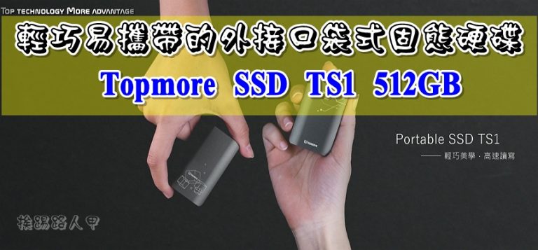 將SATA SSD搭配了2.5吋硬碟外接盒,取代速度慢容量小的隨身碟,不過發現體積不若隨身碟那麼小巧方便攜帶,且加上外接盒後更是碩大,為了攜帶方便看上了達墨科技推出小巧金屬質感的 Topmore SSD TS1 512GB 外接口袋式固態硬碟,輕巧速度又快,可說是完全解決我外出的需求。