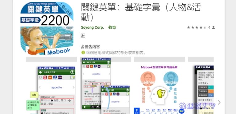 Google翻譯也是許多人的最愛,當然,每套軟體都有其優缺點,反正工具就是幫人解決問題的所在,如今智慧型手機相當普及,不管怎樣,英文的學習App仍是台灣地區的最愛,筆者要介紹一套 關鍵英單 App,採用間隔式記憶,以最少的複習次數,熟記大量字彙。