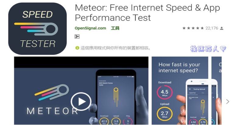 測試網路速度App不算少,最近發現一套 Meteor : Free Internet Speed & App Performance Test的測試工具,對一般使用者相當實用,操作上也是一鍵即可測試上傳、下載與Ping值,介紹給大家玩一玩。