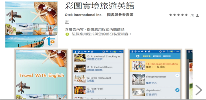想要學好英文似乎不是那麼容易,圖解式的學習對於不是英語環境的台灣,有著一定的親和力,以圖像增加記憶的速度與了解情境,「彩圖實境 旅遊英語 」App 以彩圖描繪情境搭配實用單字與會話,隨時學習在出國旅遊生活上實境的會話。