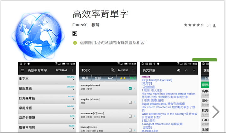 工具就是幫人解決問題的所在,功能強是唯一的選擇嗎?如今智慧型手機相當普及,不管怎樣,英文的學習App仍是台灣地區的最愛,筆者要介紹一套Android英漢字典,單字詞彙相當豐富,內含英漢字典及發音功能,可下載或自行匯入想背的單字/片語,是一套相當不錯的免費字典。