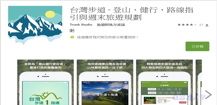 登山、健行、路線指引與週末旅遊規劃的「台灣步道」App itwalker2016/07/06Android 軟體目前開始迷上健身的休閒活動,登山健行便是假日中的主要休閒運動,「台灣步道」App是一款收錄台灣各地步道的App,登山、健行、路線指引與週末旅遊規劃的最佳指引,即使在網路訊號微弱或沒有訊號的山區,仍可使用 App 進行資料檢索,首款專門以「登山健行愛好者」之需求為中心設計的導覽 APP。