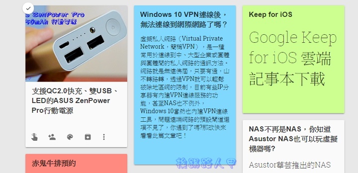 Google推出了雲端記事本的服務「Google Keep」,跨平台支援度已相當完整,透過Google Drive的雲端空間,讓使用者方便隨時記下代辦事項與各種資訊,這個App並不是想挑戰Evernote,換個角度思考,就是行動與雲端空間的整合之戰,Google Kepp輕巧易使用,簡單讓你以各種形式記錄所思與所想,絕對可以滿足一般人的需求。
