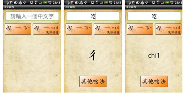 常常有一些字不知道怎麼念,傳統的方法是利用字典用部首或筆畫尋找,翻來翻過去花了很多時間,有電腦可以利用倉頡來帶出注音念法,有一款「注音查詢」App,可以將一個中文字其所有讀音的注音符號顯示出來,讓你念不出注音用手寫輸入來查詢,輕輕鬆鬆即可查出不會念的國字注音。