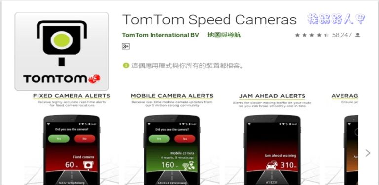 Google地圖的離線地圖,讓沒有網路的地方也可以查地圖資訊與導航,之前也推出了摩托車導航功能,但一般人最在意的測速照相與速限提醒卻一直沒著落,TomTom 測速照相 App與Google 地圖完美整合,且完全免費又無廣告喔!