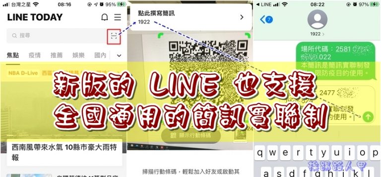行政院推全國通用的 簡訊實聯制 ,掃描QR Code後,無須再填寫個人資料,以簡化流程。但舊機種的相機無法掃描QR Code,以往只能透過「疾管家」提供掃碼功能或是 Google Lens 完成動作,LINE也隨波逐流,掃描功能也開始支援「簡訊實聯制」掃碼,不管是iPhone或Android手機都一樣方便。