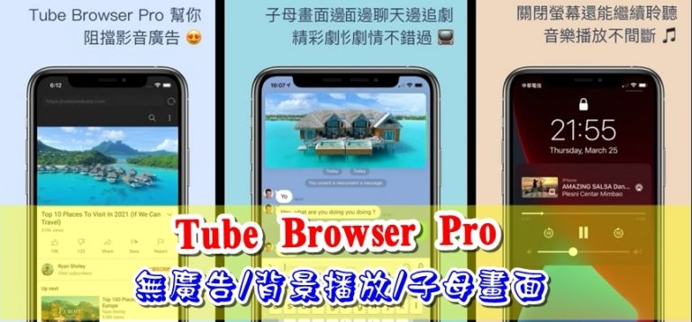 已習慣使用YouTube聽音樂或看一些有的沒的,最近發現一款 Tube Browser Pro 播放工具App,專門為觀看 YouTube 影片而生,除了沒有廣告外,也支援子母畫面與YouTube背景播放功能,就是螢幕鎖定或關閉螢幕也可以繼續聽音樂喔!