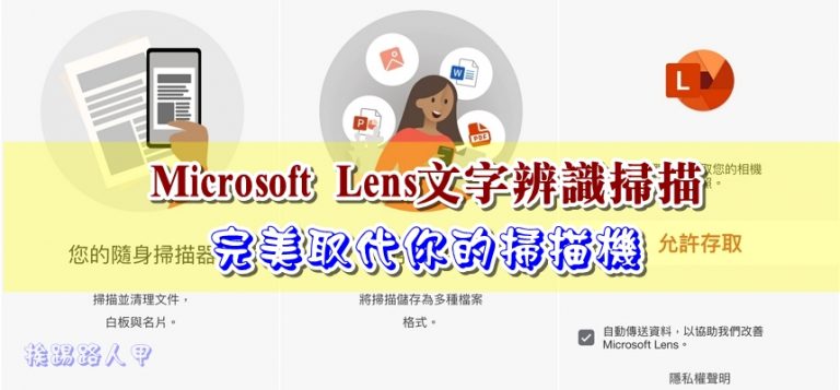 有時日常生活中的事物記錄下來,智慧型手機上的鏡頭便是最佳工具,介紹一款 Microsoft Lens App,可以將拍照後的文字、白板、名片、收據、符號、手稿數位化,可以儲存到 OneNote、OneDrive 或手機上,也可轉成 PDF、Word、PowerPoint 和 Excel 檔案,完美取代你的掃描機。
