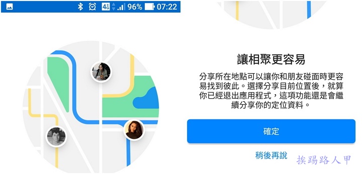 即時分享與追蹤好友的位置,讓你到任何地方能知道有哪些好友也在附近,其實不往隱私而正面思考的話,是相當實用的功能,Facebook Messenger與Facebook分離後,新版也增加了分享位置功能,讓你相約見面不會走丟。