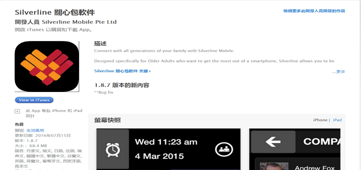 舊iPhone不必轉賣,「Silverline 關心包」將iPhone變成長輩機 itwalker2016/11/04iOS軟體在 iPhone 的系統中並沒有「老人桌面」的模式,只能使用原系統操作方式來放大字體,但長輩使用的功能不外乎打電話、照相、瀏覽相片,玩玩Line或Facebook而已,告訴你一個好消息,舊iPhone不必封存或轉賣,使用「Silverline 關心包軟件」即可將iPhone手機變成長輩機哦!