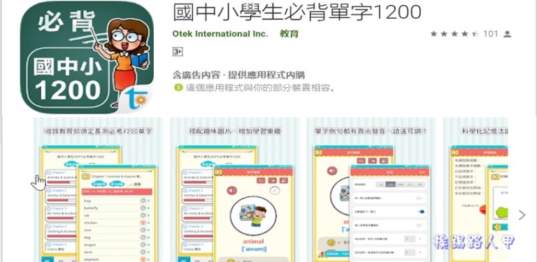 如今智慧型手機相當普及,不管怎樣,英文的學習App仍是台灣地區的最愛,筆者要介紹一套 國中小學生必背單字1200 App,採用標準音標對照+道地美式發音,搭配療癒插畫與實用生活例句,是一套相當不錯的背單字App。