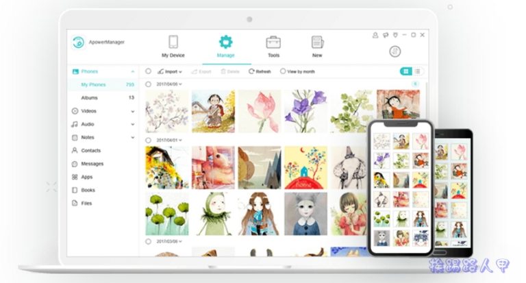ApowerManager 手機管理大師是一套專為Android與iOS的手機助理工具,有Windows、Mac桌面程式,甚提供手機的App,不用傳輸線,也不用打開 iTunes與桌面軟體,只要在區網進入瀏覽器,音樂或照片同步都不成問題,管理你的手機資料與應用程式再簡單不過。