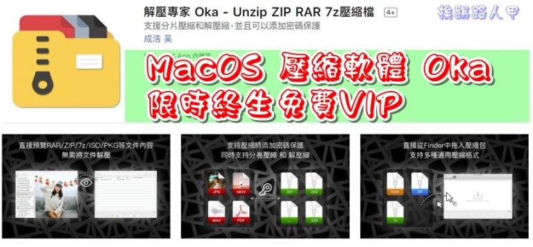 你無須再尋尋覓覓破解版了,「 OKA 」是一款相當實用的壓縮與解壓縮軟體,除了常見的的 7z 及 zip 格式壓縮格式外,還可批次處理、分片壓縮、密碼保護和解壓縮,重點目前限時終生免費VIP,你還等什麼?趕快來下載吧!