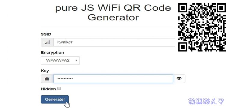 每次去好友工作室或咖啡店等營業場,總是會提供免費的WiFi無線網路,方便他人使用,不過密碼複雜的店家會讓顧客多花時間,甚至容易輸入錯誤再來一次, QiFi 網站可以SSID、加密模式、連線密碼產生的QR CODE,只要掃描一下就可以連上,是不是更酷呢?