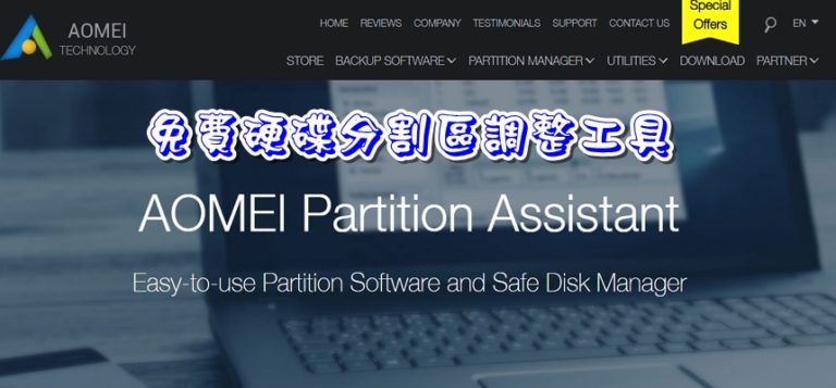 磁碟分割區工具還不少,這裡介紹一套 AOMEI Partition Assistan 免費硬碟分割區調整工具,可以輕鬆的分割、合併或格式化儲存裝置,且也支援Windows 10系統與SSD固態硬碟,重點是免費的,你不下載來試試嗎?