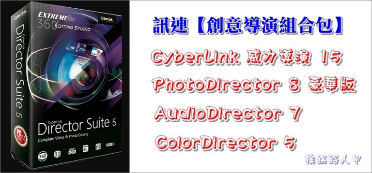 想要踏入影片編輯的用戶來說,「威力導演」的確是初學者的最愛,這次訊連推出訊連創意導演組合包( CyberLink Director Suite )限時免費下載,有威力導演 15、相片大師 8豪華版、AudioDirector 7以及ColorDirector 5等四套,可說是大放送啊!