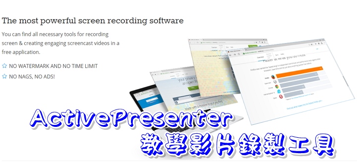 不管是教學或是向別人炫燿,總是希望能完美呈現過程的畫面。那天剛好有一場會議需要將操作的畫面【錄影】下來,截圖軟體似乎派不上用場,告訴你不用大費周章地尋找錄影程式,「ActivePresenter」讓您輕鬆錄影及編輯影片教材,重點免費版沒有時間限制、廣告與浮水印的限制哦!