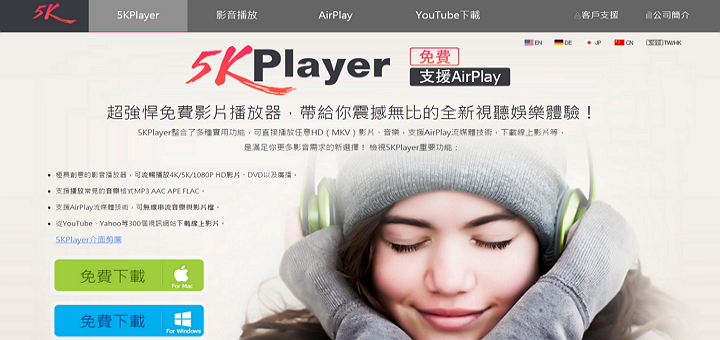 支援AirPlay無線串流強悍的免費影片播放器5KPlayer itwalker2015/09/03軟體市面上優質的媒體播放器不算少,不過一般使用者大多還是用Windows內建Media Player來播放影片或音樂,但眾所皆知,Media Player對於很多時下流行的影音格式都不支援,Windows 10的Windows Media Player支援MKV影片的直接播放,的確相當令人喝采,不過對媒體格式仍存在一定的限制,如果你覺得內建的Media Player不夠力,可以試試簡而有力的免費影片播放器「5KPlayer」。