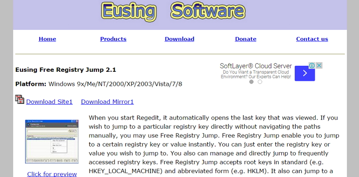 快速到達登錄檔編輯器修改的路徑-Eusing Free Registry Jump itwalker2015/09/16軟體登錄檔編輯器似乎是Windows玩家必碰的程式之一,一些密技與優化的技巧幾乎來自登錄檔編輯器的修改動作,但每一次登入總是要一層層的往下開啟尋找,相當的不方便,Free Registry Jump可以記錄你直接想要跳轉的位置,以方便下次的登入,實在相當方便,是調教Windows系統不可或缺的小工具
