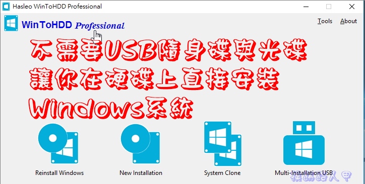 如果沒有USB隨身碟或光碟的情況下想要安裝系統,那怎麼辦? WinToHDD 是一款免費實用的Windows系統安裝工具,不需要外接USB或光碟裝置,讓你直接透過硬碟來安裝Windows系統,如今Profession專業版限時免費下載,動作要快哦!