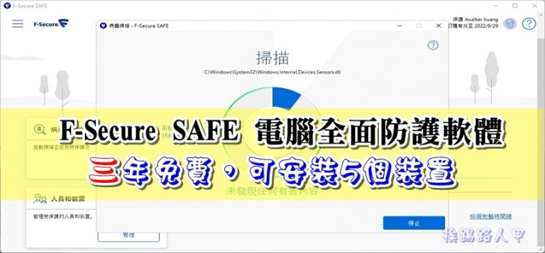 限時免費 F-Secure SAFE 的電腦全面防護軟體,支援 Windows、Mac 、Android、iOS 等跨平台裝置,還支持安全的網上銀行連接,您和您的家人可以自由地上網,而無需擔心任何事情,目前限時免費一年,可安裝5台裝置喔!
