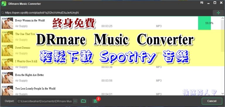 Spotify付費後可免除廣告、離線下載與高音質選擇,但這些都不是重點,因DRM保護,無法將離線的檔案放至筆者的客廳音響來播放, DRmare Music Converter 可以將 Spotfiy 歌曲直接下載成MP3儲存,讓你免廣告離線收聽喜愛的音樂,甚至可以至別的裝置上播放,目前限時終身免費序號,動作要快。
