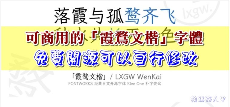 總是感覺有花八門的英文字體,但卻對寥寥可數的中文字型感無奈,看慣了Windows系統內的標楷體嗎?介紹一套也霞鶩文楷字體,基於日文字型 Klee 這一款高質量的日文字體,補全簡繁常用字後命名 「 霞鶩文楷 」,除了免費外,也可於商用喔!