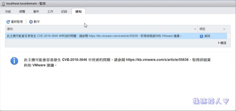 沒想到買了台貴鬆鬆的HPE ProLiant DL380 Gen10 伺服器,安裝完VMware ESXi 6.7後發現有CVE-2018–3646 的警告訊息,查了一下是 L1TF 有關的漏洞提醒,其實就是為了避免駭客取得L1快取的資訊,其實這個錯誤訊息是可以透過更改設定值來取消的。