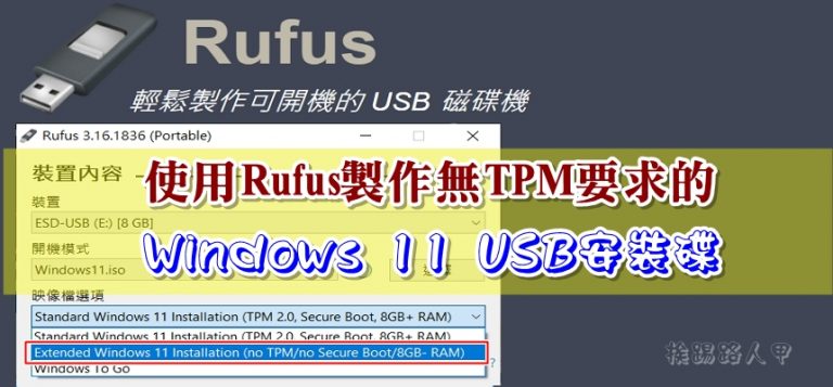 Rufus 是一套支援中文的免費工具,輕鬆的將ISO映像檔製作為USB開機隨身碟的軟體,這樣沒有光碟機也可以使用USB隨身碟來安裝各種不同的系統,這次新版還可以製作無TPM要求的Windows 11 USB開機安裝碟。