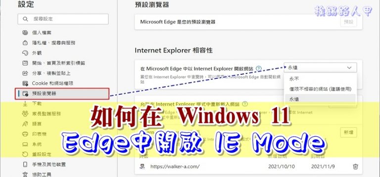 雖然Internet Explorer不是Windows 10預設的瀏覽器,但也沒有完全移除,不過總有散場的時候,Windows 11 中正式的將 Internet Explorer 移除了,但一些老舊網頁與公家網站仍可能需要IE怎麼辦?其實Microsoft Edge中有隱藏一個使用 IE Mode 的開關,如果擔心影響你的工作,那可以試著將 IE 模式打開看看。