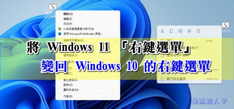 更新Windows 11後 ,新的設定介面又完全進化了,但也有些一直無法適應,最明顯的就是「右鍵選單」,雖然看起來很舒服,但總是都會有腦袋空轉1秒的延遲動作,不想回到Windows 10系統,所以只好將 Windows 11 右鍵選單 變回 Windows 10 的右鍵選單。
