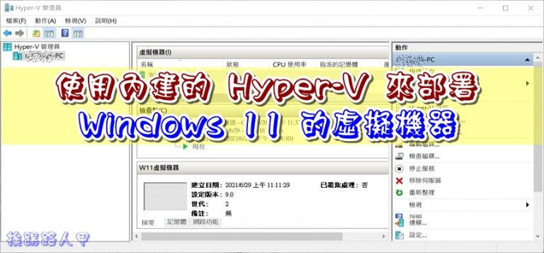 Windows 8/10專業版有內建 Hyper-V 的功能,夾著Windows系統的優勢,可能會掀起另一波的虛擬機器軟體大戰,不談每個虛擬機器模擬的優缺點,目前Windows 11預覽版滿天飛,你也想嘗鮮嗎?不用重灌原先的機器,使用Hyper-V來玩Widnows11虛擬機吧!