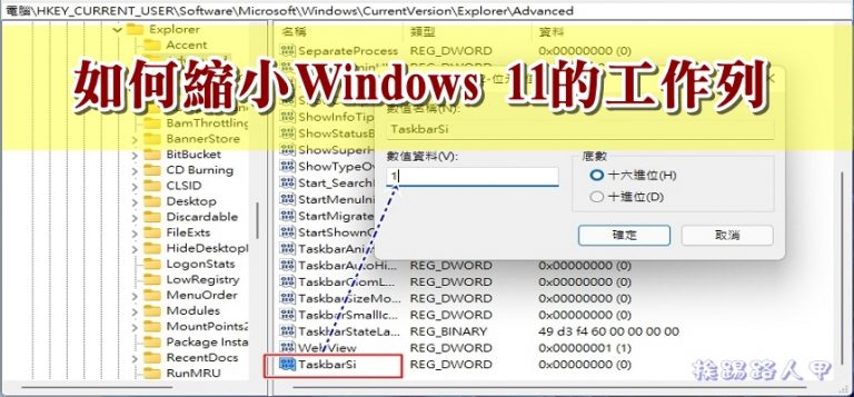 之前Windows 10可以調整工作列的大小,Windows 11卻不得其門而入,尤其目前的螢幕都是寬螢幕,高度影響可看的垂直範圍,為讓螢幕可以看到看多的垂直資料,調整工作列是相當務實的方式,想要調整 工作列 的大小嗎?來看看挨踢路人甲的說明。