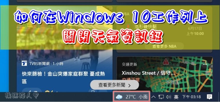 之前的一次更新發現工作右邊多了個 天氣資訊 鈕,此按鈕上會顯示天氣圖示、溫度與下雨狀況,但此按鈕靠近右邊的通知藍圖示區,常常不小心停到此按鈕就彈出大大的區塊有點討厭,如果你也跟我有一樣的困擾,關閉天氣資訊很容易的。