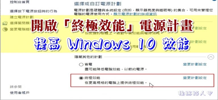 一般系統都會有電源管理的機制,尤其是筆電更為重要,因為電源模式會影響電腦上執行的工作效率,如何選擇適的合電源模式來獲得效能、使用時間或兩者間的平衡呢?如果你是桌機,告訴你一個技巧,其實Windows 10還有個隱藏的 終極效能 (電源計劃)喔!