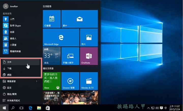 Windows 10 終於將完整的開始功能表回歸了,這個新介面也崁入Windows 8的開始畫面,因此開始功能表上除了出現常用應用程式外,也僅顯示檔案總管、設定與電源選單,其實您還可以添加下載,文檔,圖片,音樂文件夾到開始功能表上哦!