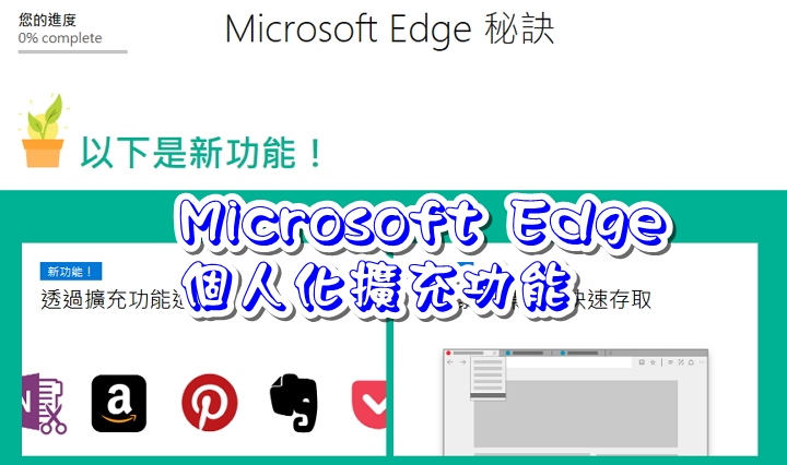 Windows 10 1607版後看到了人見人愛的外掛功能,就外掛的數量來說,與Chrome與Firefox 兩位前輩比簡直是小巫見大巫,但總是踏出的第一步,有總比沒有好,或許Microsoft Edge瀏覽器慢慢會擺脫是下載Chrome的跳板,就讓我們來一起看看Windows 10 1607版 Build 14393後的Edge瀏覽器外掛擴充功能。