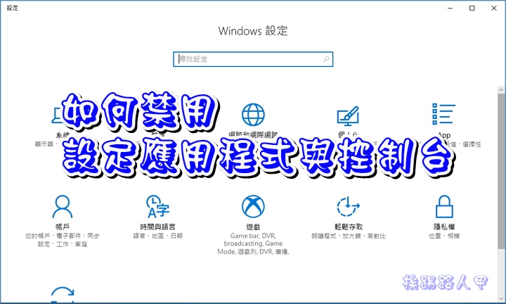 Windows 10 的設定應用程式新功能是傳統的控制台所沒有的,再還沒完全轉移所有的功能前,設定應用程式與控制台會同時並存。有時想要將你的電腦與他人分享,但不希望其他人更改您的設定相關的功能,那就得關閉設定應用程式與控制台,挨踢路人甲告訴你有兩種方法可以關閉禁止使用。