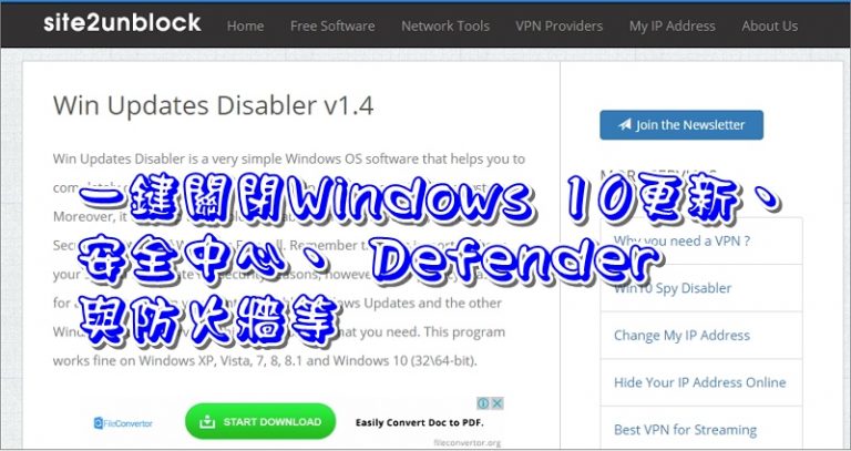 Windows 10的強迫升級讓用戶反彈,有一套 Win Updates Disable 除了可以一鍵關閉Windows 10的自動更新外,也能關閉安全中心、Windows Defender、防火牆等,不需要繁雜的步驟與DIY,只要開啟軟體點選就可以快速設定,簡單又方便。