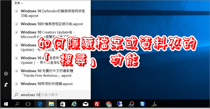 Windows 10在工作列上有個搜尋功能,直接可以在PC上搜索文件和文件夾,簡單快速又方便,但你會發現,明明檔案在PC上的硬碟內,卻無法搜尋到,或者因某些理由不想被搜尋到,其實,Windows 10的搜尋選項是可以隱藏搜尋的範圍,就讓挨踢路人甲來說明這功能。