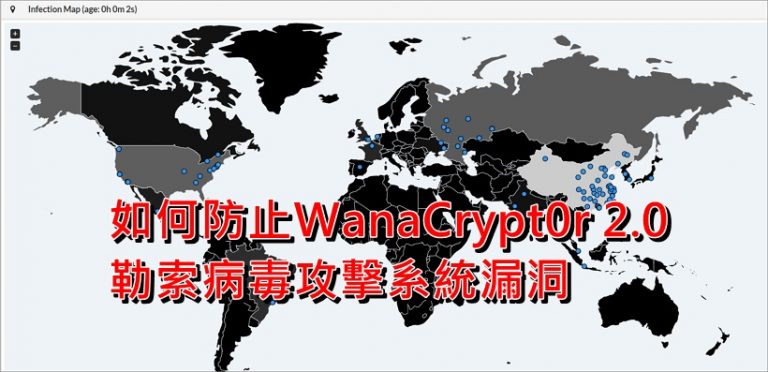 WanaCrypt0r 2.0 勒索病毒正在大規模攻擊系統漏洞,請務必更新MS17-010修補程式 itwalker2017/05/14Windows10, Windows8, 軟體WanaCrypt0r 2.0 勒索病毒,利用MS17-010漏洞攻擊,這個漏洞主要是可以讓攻擊者遠端執行程式碼,天啊!簡直是開後門讓駭客可以長驅而入,趕快下載 MS17-010更新,不要鐵齒,請立即更新。