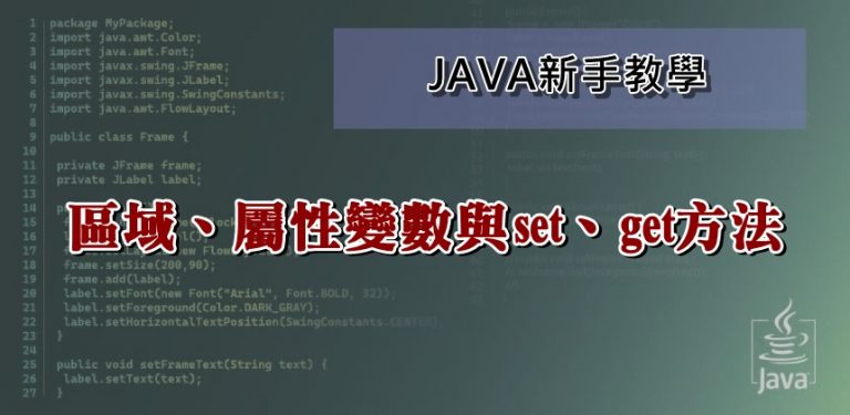 JAVA新手教學 (5) 中我們提到了類別與方法的宣告及呼叫,今天就來講講最經典的 set、get 方法吧!但在這之前,我們要先了解到區域變數與屬性變數的差別在哪裡,以及如何使用。話不多說,讓我們開始吧!