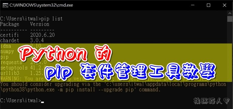 好像只要學會Python即可行走天下,或許沒有人願意學習一套程式語言後,面對不同的領域又要再學習另一套,號稱萬用語言的Python能獲得初學者的青睞,的確就是那令人又愛又恨的五花八門模組(函式庫),所以本文探討如何利用 pip 安裝與移除自己想要的模組。