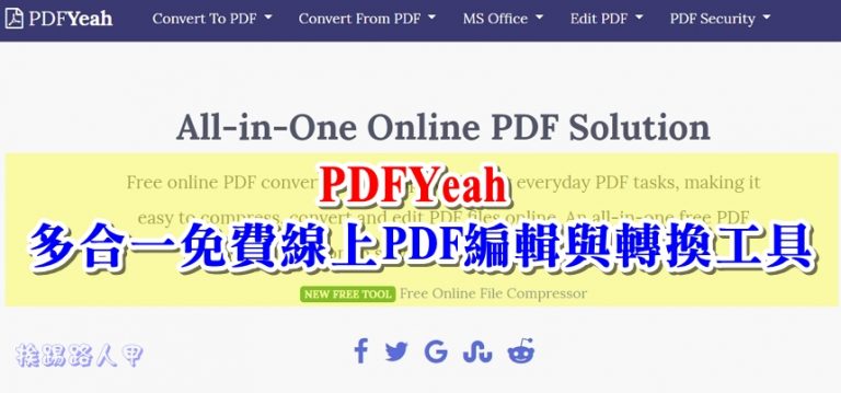 PDF格式無所不在,Adobe的Acrobat編輯版本價格不斐,所以特別介紹一套線上 PDFYeah 工具,不用安裝任何軟體,即可輕鬆完成各種格式與PDF的轉換,也可、合併、分割、壓縮、解壓縮、保護與解鎖等,重點是免費的。